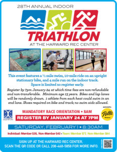 This event features a ½ mile swim, 10-mile ride on an upright, stationary bike and 4 mile run on the indoor track. Space is limited so register early. Registration fee is non-refundable and non-transferable after January 24th.  Minimum age 13 years.